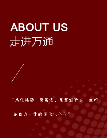 通化萬通葡萄酒股份有限公司是吉林萬通集團所屬的全資控股子公司,是集葡萄酒、保健酒、果露酒、配制酒、飲料、白酒等六大品類研發(fā)、生產(chǎn)、銷售為一體的現(xiàn)代化規(guī)模企業(yè)。公司坐落于素有“中國葡萄酒之鄉(xiāng)”“葡萄酒城”美譽的吉林省通化市二道江區(qū)。公司2000年建廠,2011年11月1日被萬通集團重組收購,企業(yè)發(fā)展步入新紀(jì)元,興建了具有法國特色的…...
